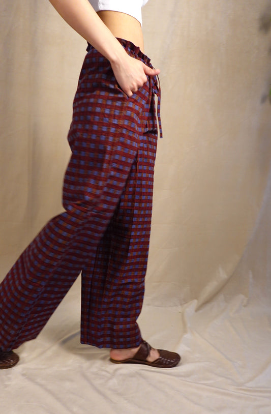 Crimson Cascade Cotton Pants